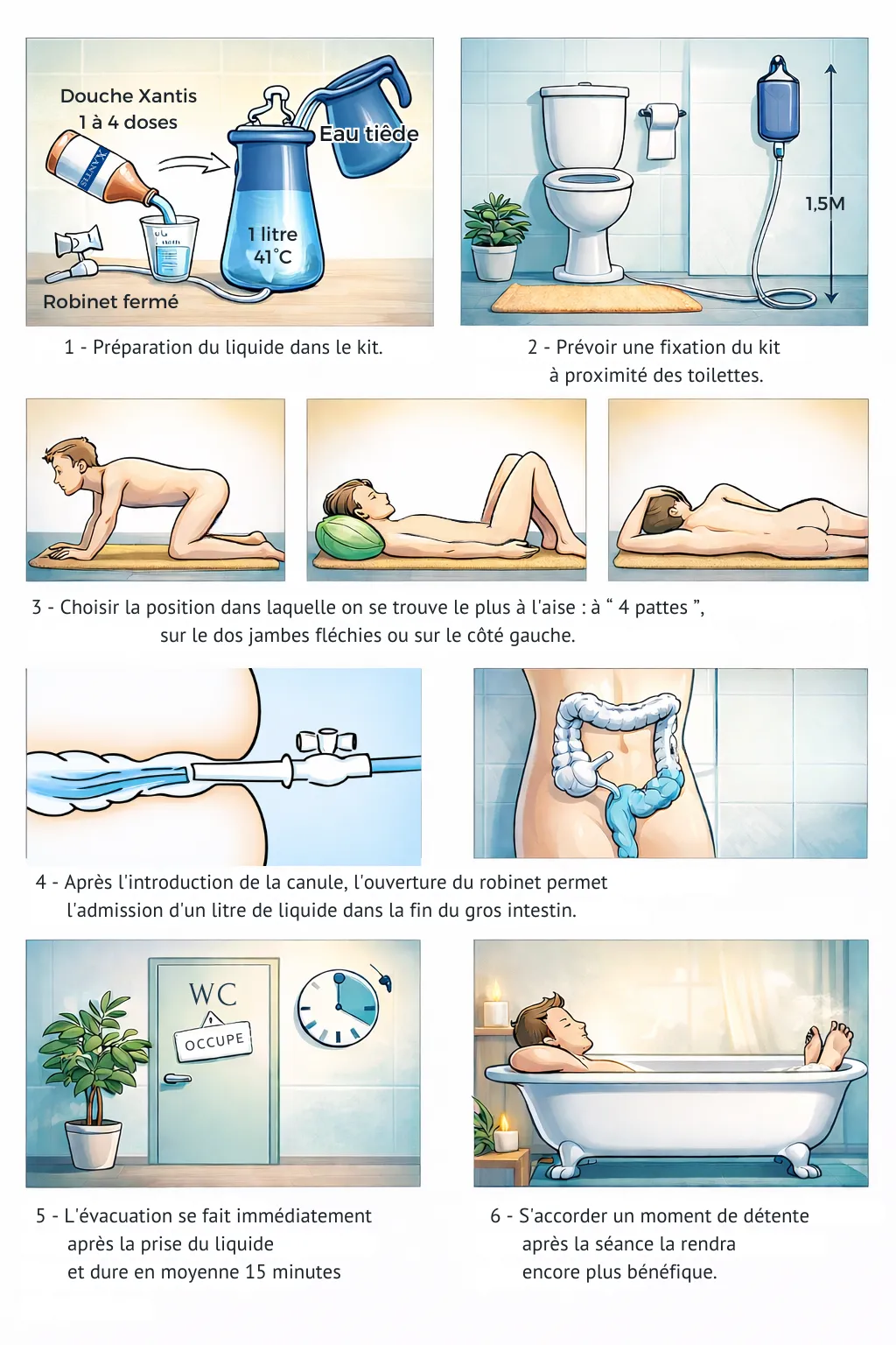Inchangée depuis 1927 la préparation pour les séances de douche rectale contient de la mauve (adoucissante et réparatrice) et de la grande absinthe (tonique et stimulante, vermifuge et antiseptique) biologiques cultivées localement en Dordogne et des sels de potassium.